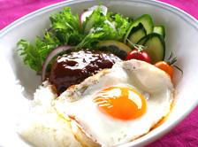 みんな大好きなロコモコ丼をおうちでも楽しみましょう。ごちそうサラダ2品もご紹介。女子会にもピッタリ☆