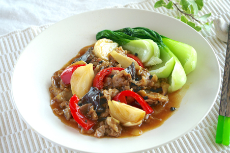 「水なすと豚しゃぶのねぎ味噌だれ」