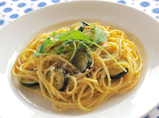 ズッキーニの水分でカルボナーラソースが和らいで、絶妙なバランスに!